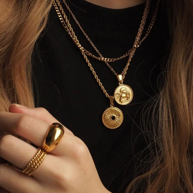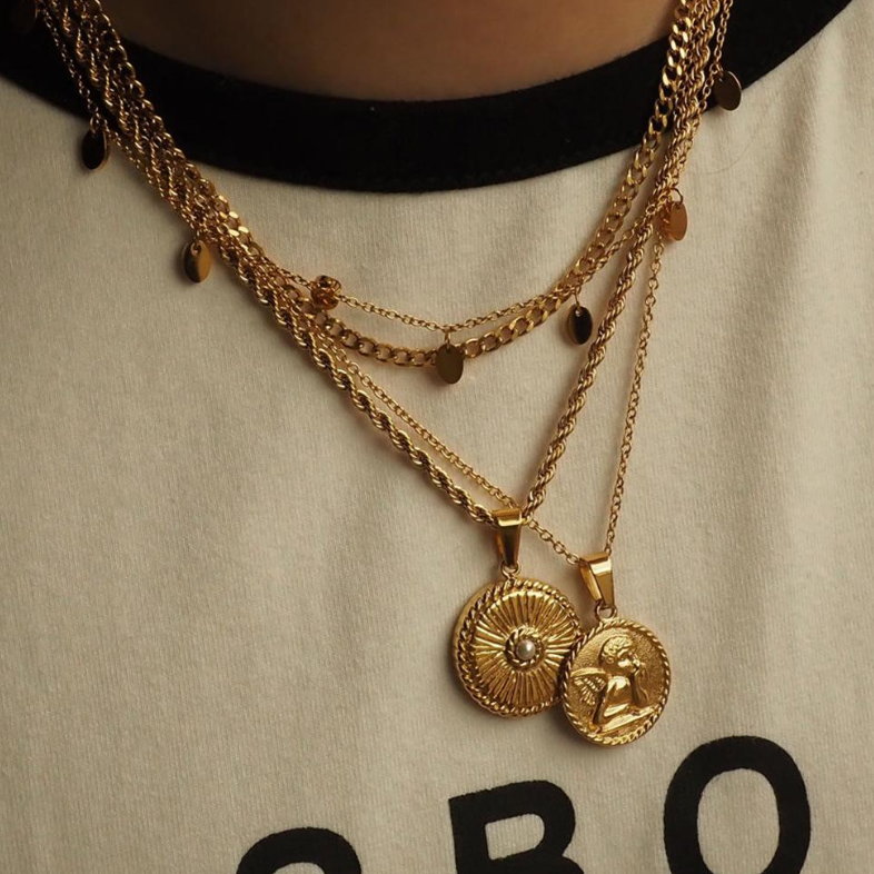 A complex double-layered coin necklace will give your jewelry box the distinctive touch it needs.